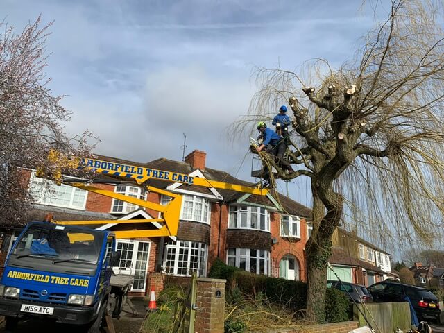We were recently asked to carry out specialist tree pollarding services for a weeping willow in Caversham. Out experienced team of arborists worked to quickly and safely remove hazardous tree branches. As part of this project, we also needed to employ traffic safety management, to prevent damage to passers-by and vehicles. Thanks to our tree pollarding, we were able to restore the tree’s stunning appearance and prevent health and safety risks.